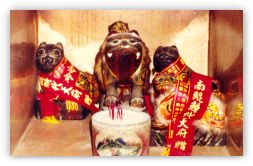 過平安橋 過平安橋是台灣民間信仰中最常見的改運儀式,也是最便宜的。一般平安橋都在神明生或建醮時設立,而南鯤鯓代天府則在過年的時候設立平安橋,供民眾過運。平安橋設有龍虎門供信徒進出,過平安橋改運的步驟花一百元買一個代表自己的紙人,由龍門進虎門出,進去的時候要跨過底下的火爐,走過平安橋下來後會有紅頭道士替你唸咒改運,並在衣服後蓋上神明的官章後即可。 |