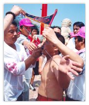 ![]() 穿口針的乩童 |